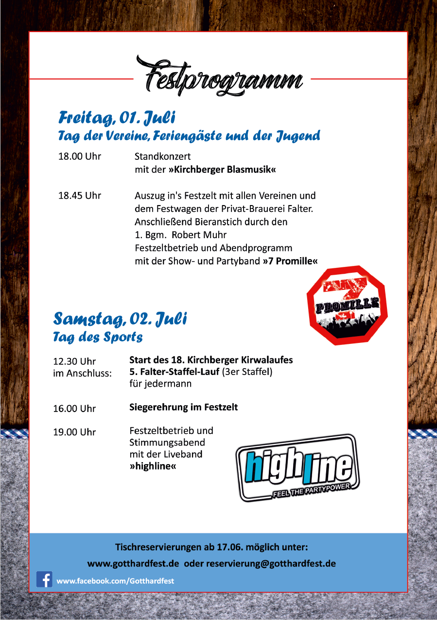Wir freuen uns schon aufs Gotthardsfest in Kirchberg vom 01.07.2022 bis 04.07.2022. Seits mit dabei und feierts gscheid mid.