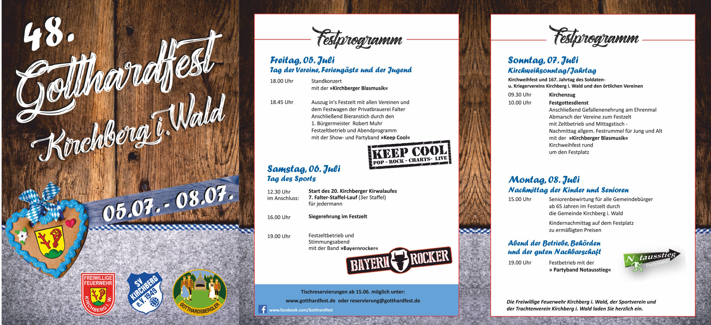 Festprogramm vom 48. Gotthardsfest in Kirchberg vom 05.07.2024 bis 08.07.2024.
